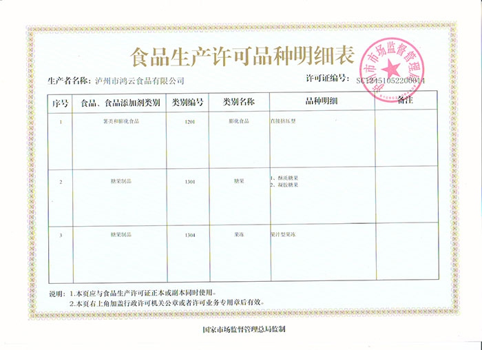 食品生產(chǎn)許可證明細(xì)表